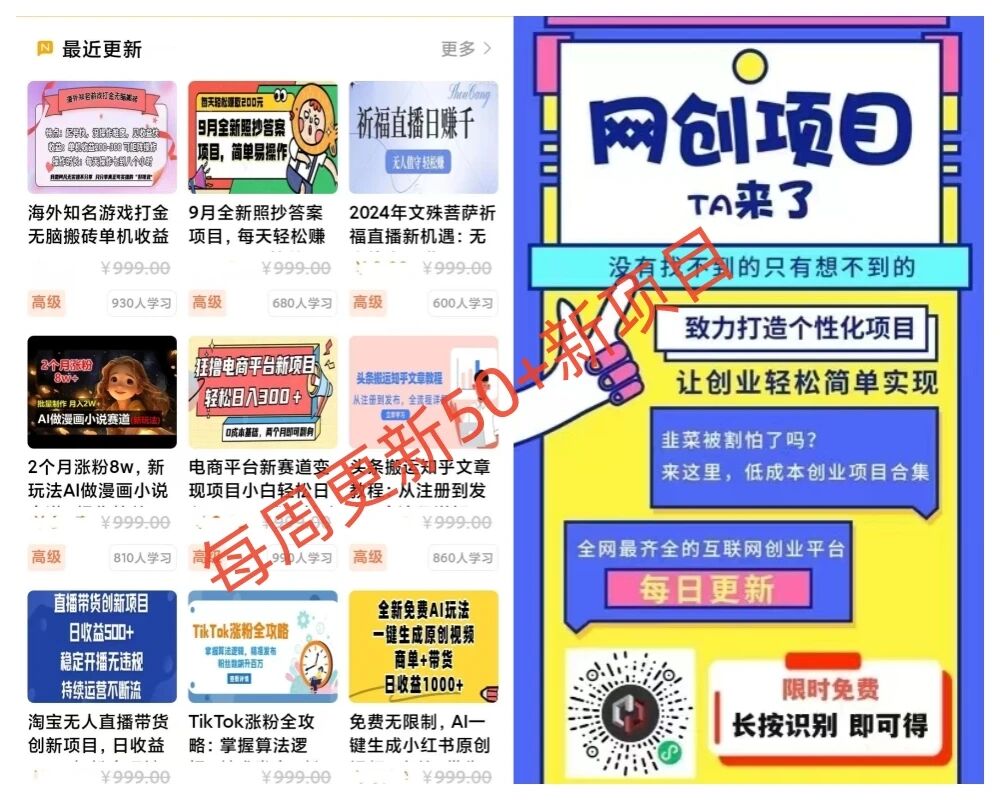 好了,今天的分享就到这里,希望对大家有所帮助。最后,我搭建了一个项目库,每周都会更新50+当前最新热门新项目进去,下面是项目库介绍,想做副业的朋友可以看看,扫一扫即可得!