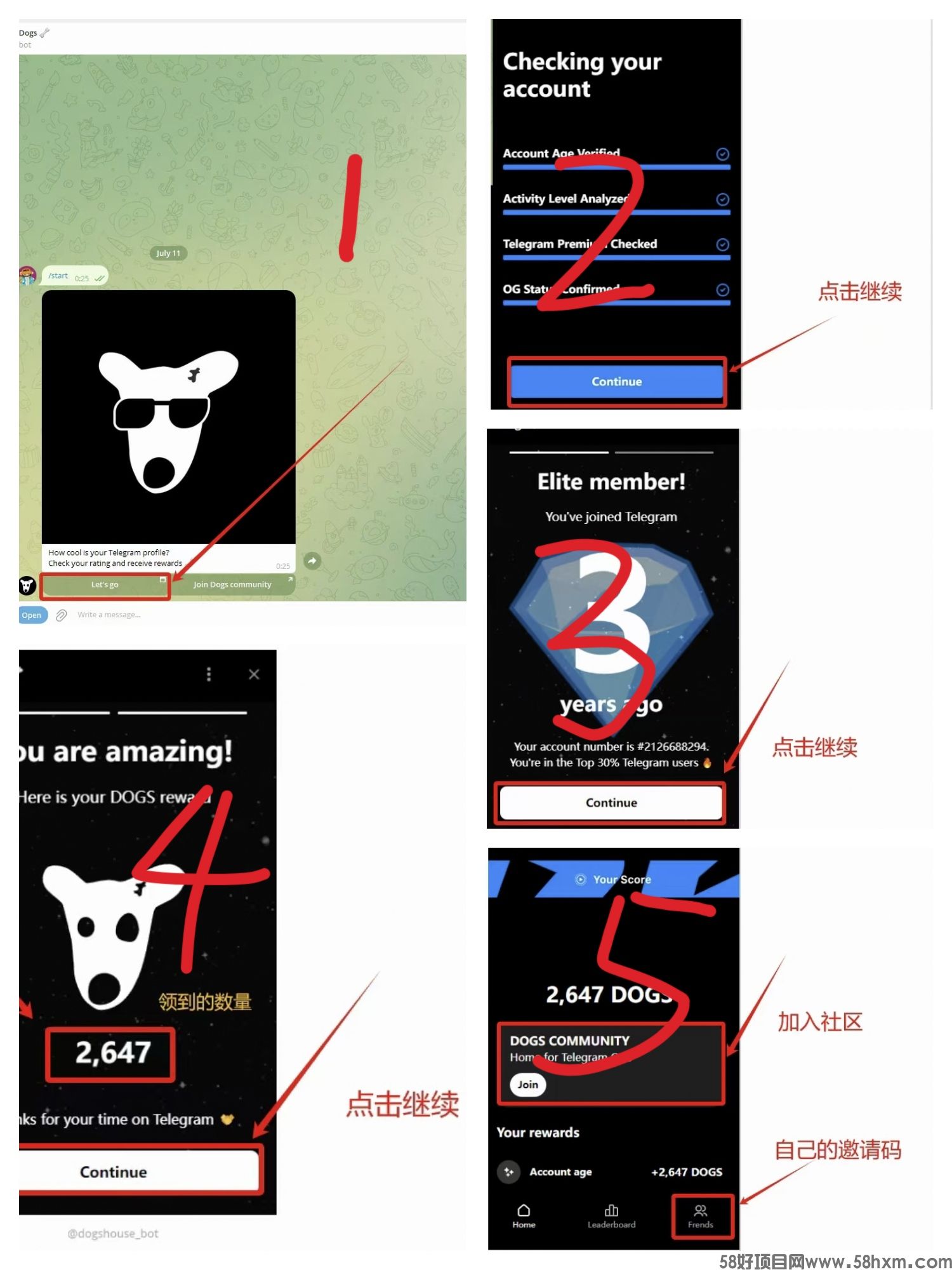 完成简单任务可以获得更多空投,推广5个人可以领取5万个dogs