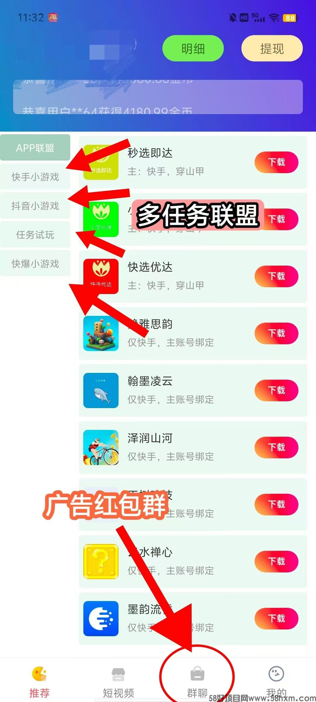 〖快抖磨方〗 零撸广告赚,保底收益高,最新模式,到账50➕ 大型赚米新软件
