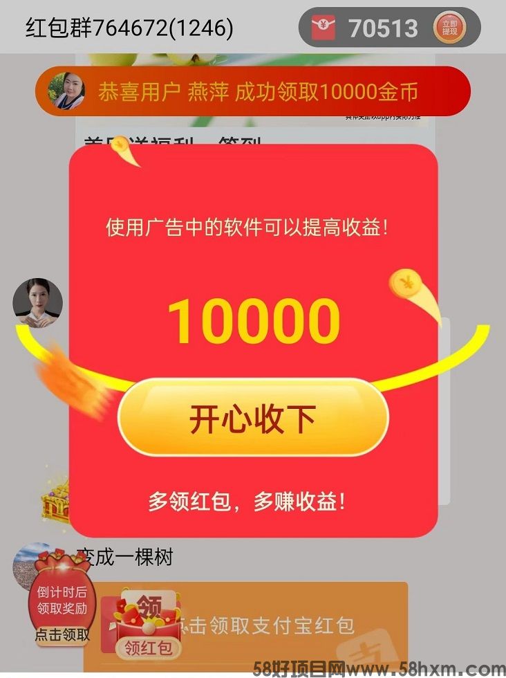 看广告不到顶包不要领,到了也可以在看几个广告在领,所有兼职类的广告一律不要相信,也不要去做,当遇到关不掉,或者找不到x的,直接清理后台,重新进入。